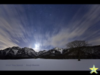 12月10日の夜の一本松です。ちょうど皆既月食中で、一本松の背景の夜空には、たくさんの微かな星たちが現れて、輝いていました。